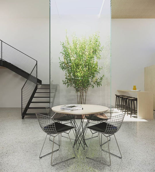 "...הצבעים שאני עובדת איתם בתכנון החלל נובעים מתוך החומר עצמו, למשל: בטון, זכוכית, מתכת, שיש, אור וצמחייה..."